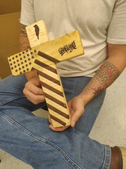Exotic Hardwood/Reclaimed Trap Wood We Fight Monsters Flag Cross